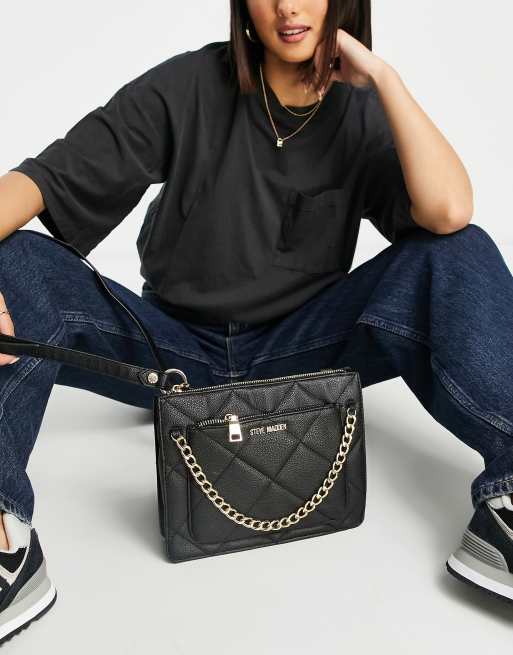 Steve Madden quilted crossbody bag with chain detail in black ASOS
